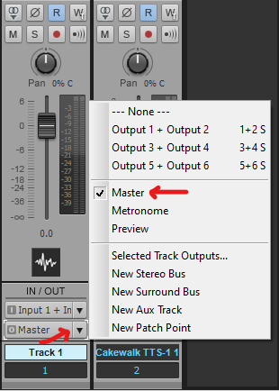 - Revisa el menú desplegable de Salida de cada pista para asegurarte de que envía el audio al bus Master.