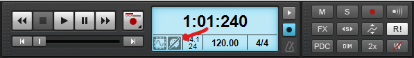 - Si el motor de audio se detiene, puedes forzar el reinicio del motor de audio y MIDI (solo si el transporte no está reproduciendo ni grabando) manteniendo presionada la tecla CTRL y haciendo clic en el botón Reset en el módulo de la barra de control de transporte. Esto también reiniciará ASIO.