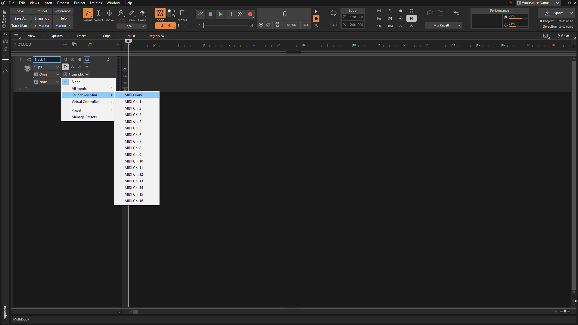 - Selecciona tu teclado MIDI de la lista. Puede aparecer con su nombre o como Omni (lo que significa que recibirá de cualquier canal en el teclado MIDI).