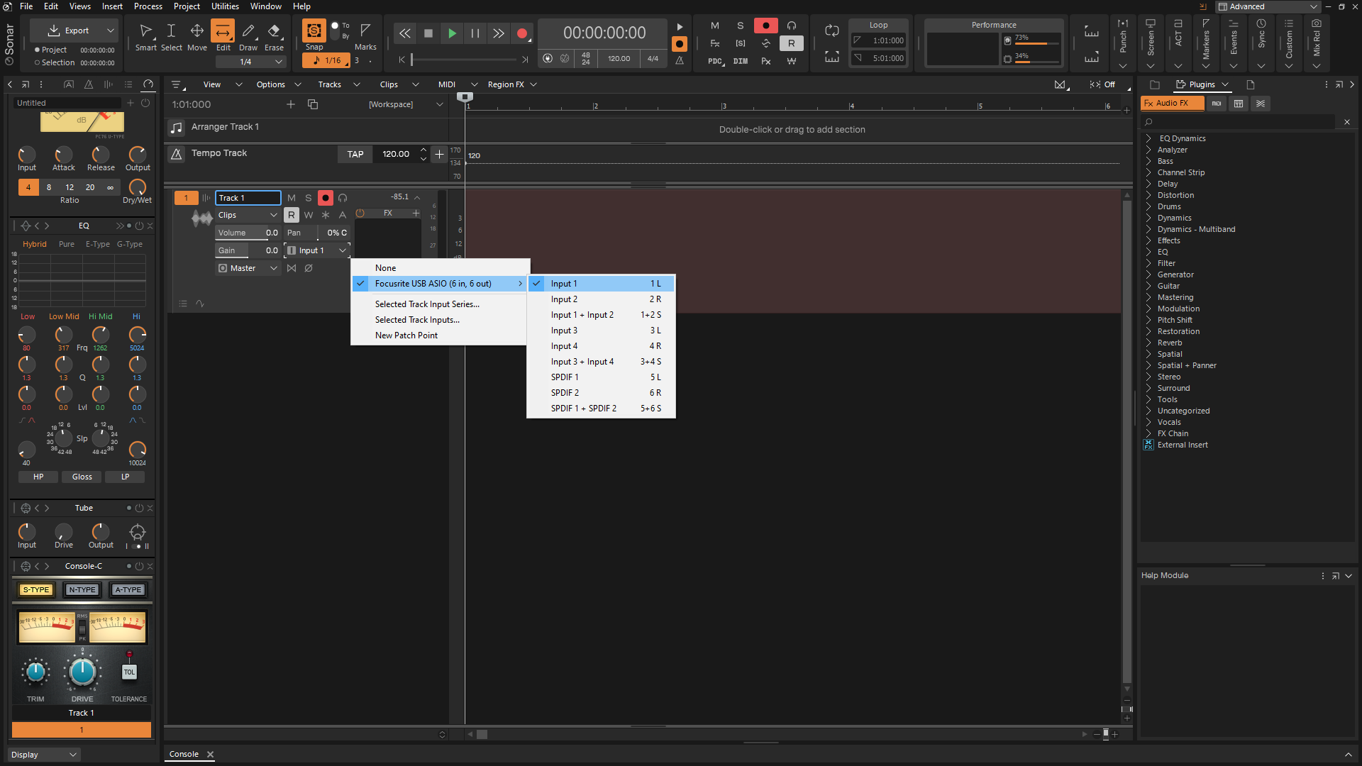 - En el panel de control de la pista, haz clic en el menú desplegable Entrada.