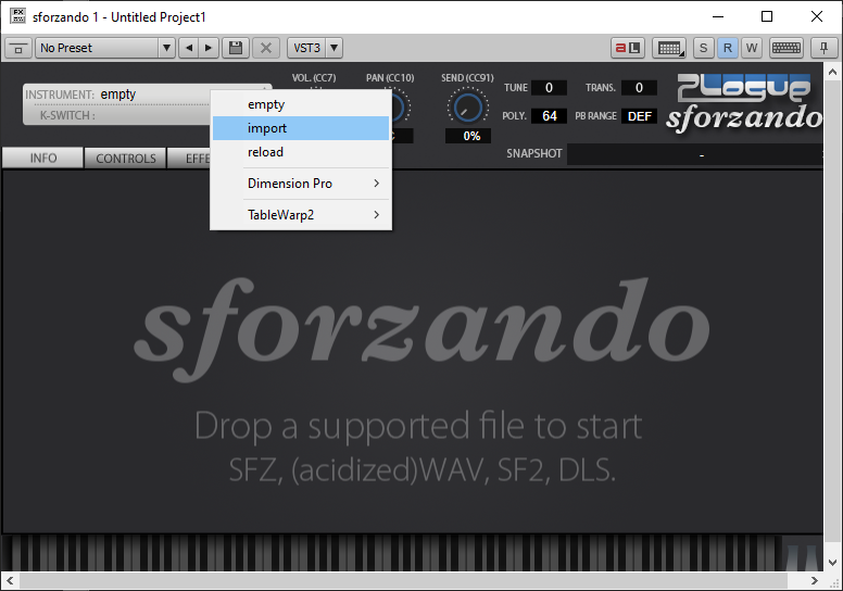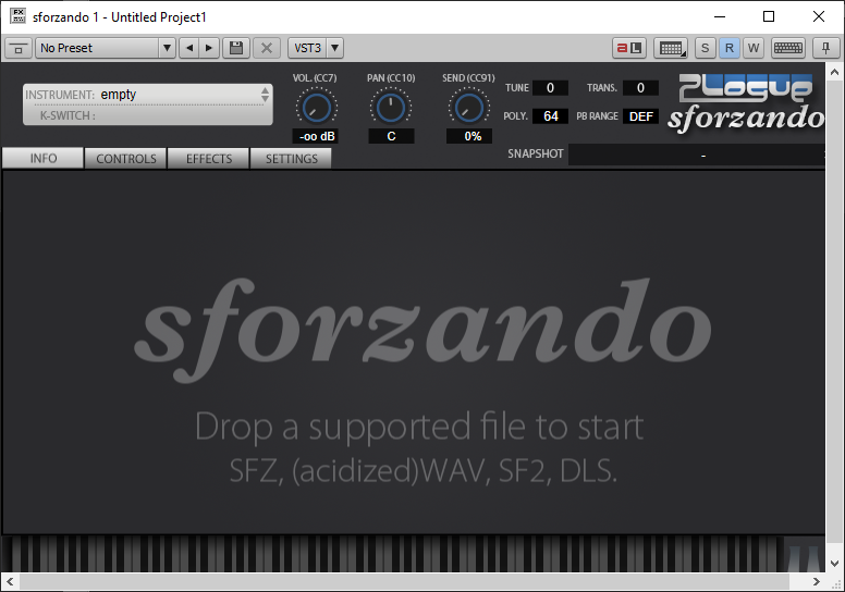 - Sforzando se abrirá como un reproductor vacío sin sonidos cargados.