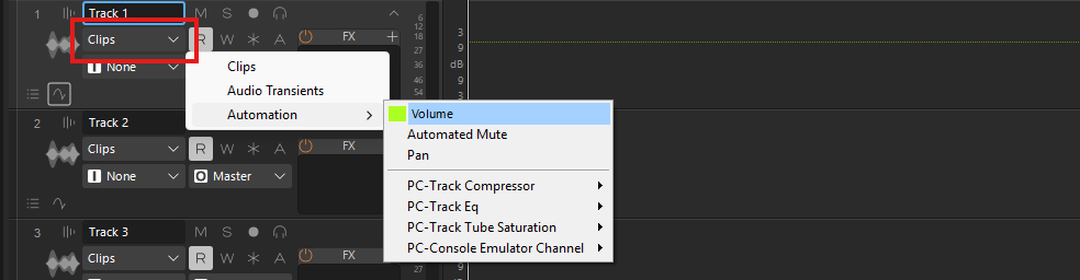 - Alternativamente, haz clic en el ícono de Pista de Automatización en el encabezado de la pista.