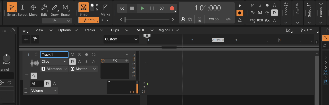 - Haz clic y arrastra en la pista de automatización para crear puntos de envolvente.